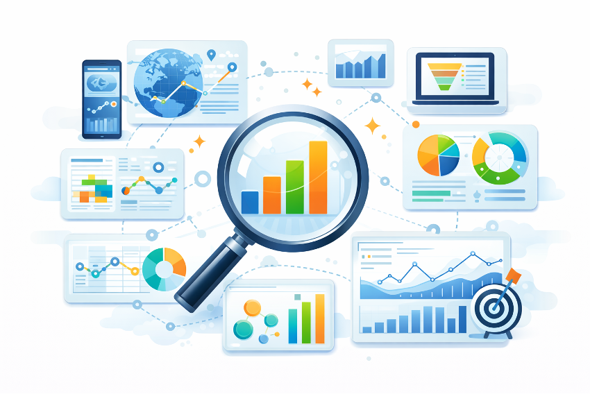 標準レポートで大まかな傾向を掴んだら、次に進むべきは「データ探索」での深掘り分析です。