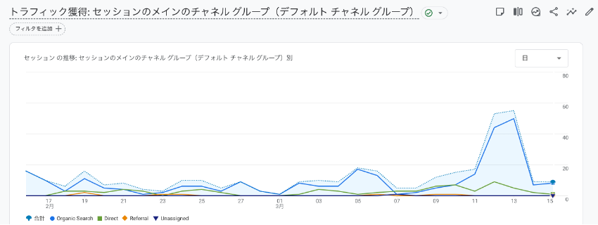 まず、サイト全体のパフォーマンスを把握し、どこに課題があるのかの「入り口」を見つけます。この段階では、GA4の「集客レポート」と「セグメント」機能を活用します。